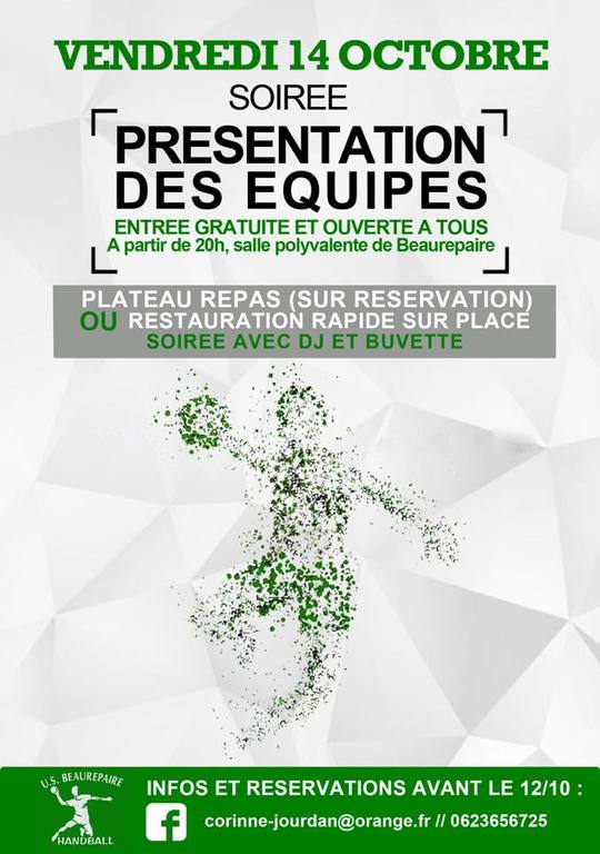 Vendredi 14 octobre 2016 le club organise sa soirée présentation des équipes ! L'occasion de faire mieux connaissance, ou de se retrouver en ce début de saison pour un moment festif.