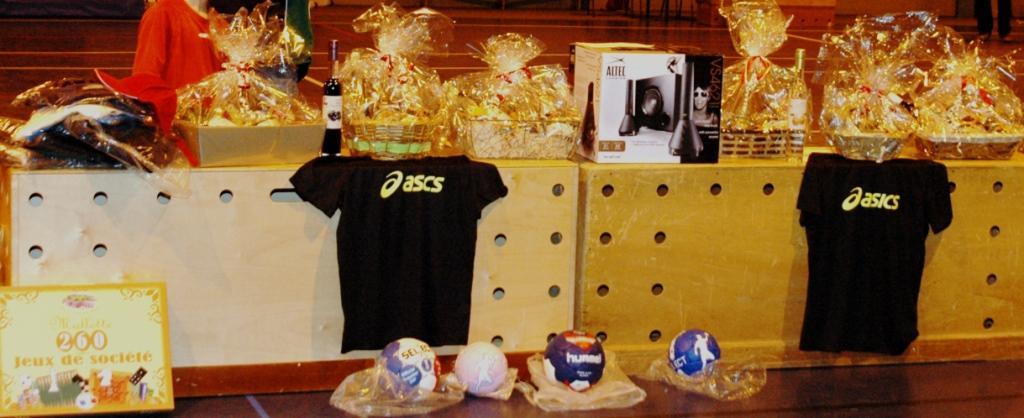 Survêtements Duarig: LAURENS Robin, GAILLOT Célia, FRANDON Sylvaine; Sweat-shirt Duarig: MAIA-FONSECA Patrice; Ballons Select: EMPTOZ Rolande, PUPAT Mendy, JOURDAN Mégane, PONTHUS Bruno; Malette de Jeux: MARION Lauryl; Amplificateur MP3: FRANDON Sylvaine;T-shirts: Bar-tabac Le St Barth, FRANDON Nicolas, CAMPBELL Lionel,PERREON Ilona, CHAMPION Corentin; Short+casquette: COURTOISON; Sac Adidas: IMHOF S, Bouteille: GUIRONNET Tifanny, DAVICCO G.