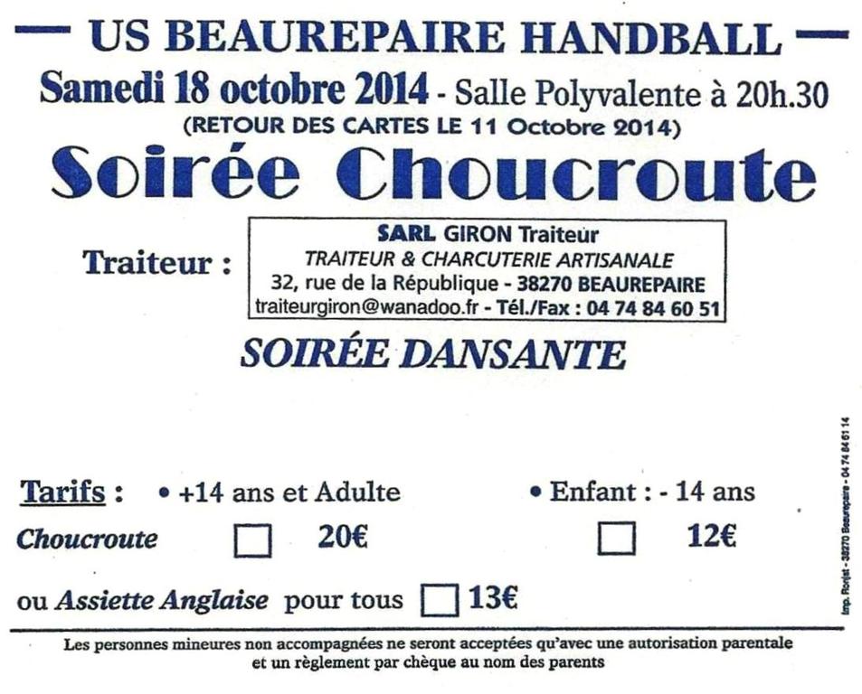 Tarifs: Adultes 20 Euros, moins de 14 ans 12 Euros. Si vous n'aimez pas la choucroute, possibilité d'assiette anglaise à 13 Euros.
