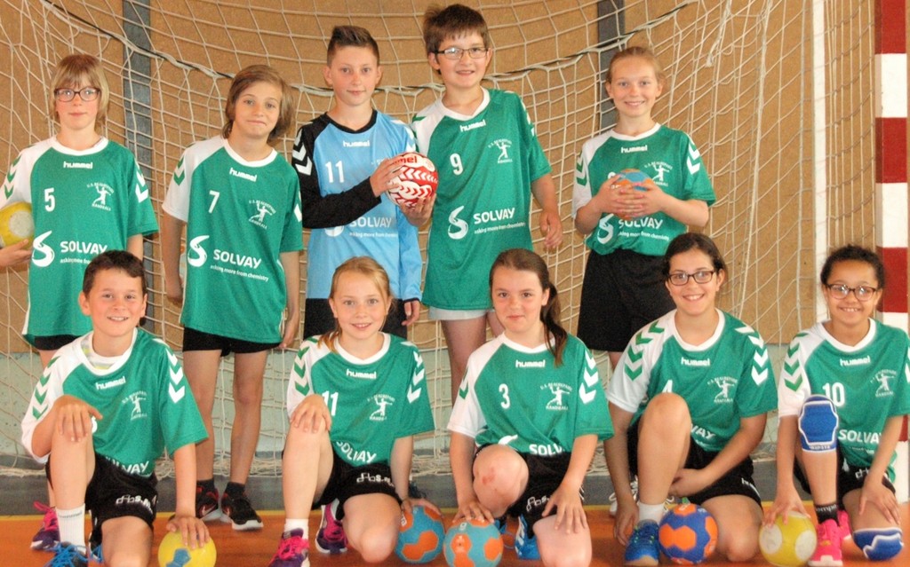 En cette fin de saison, les -12 mixtes arborent un jeu de maillots flambant neuf, grâce à l'appui d'un nouveau partenaire, Solvay, industriel du couloir rhodanien. Fruit de l'activité de nos bénévoles (et de l'intermédiation de Francis, merci à lui), ce nouveau partenariat permettra à nos jeunes d'etre au top pour plusieurs saisons!