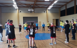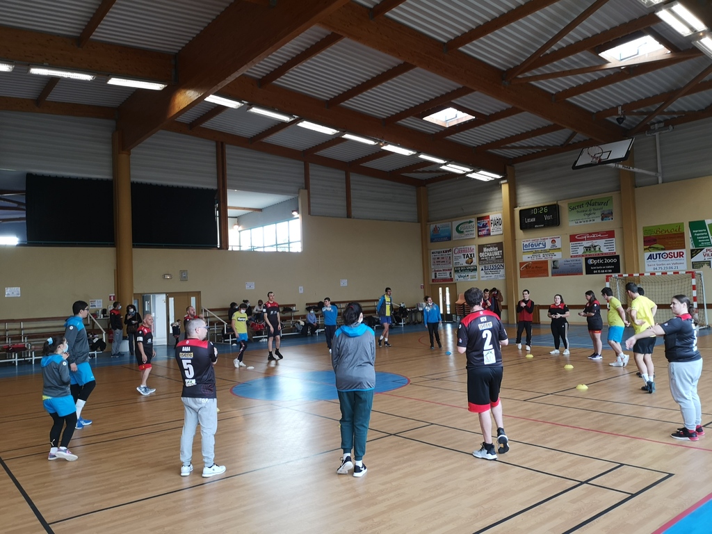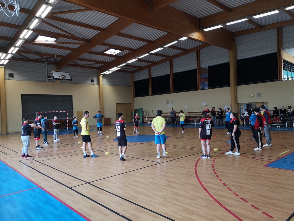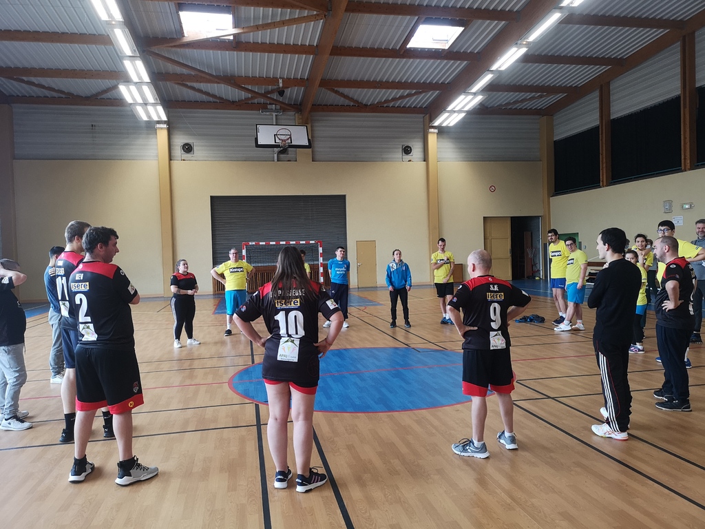 Disons-le, ceux qui espéraient une confrontation directe sont restés sur leur faim. Plutôt qu'un affrontement Beaurepaire x St Marcellin, ce Samedi matin a été l'ocasion pour notre section sport adapté de faire connaissance avec celle de St Marcellin. D'un commun accord, Keshia Merlin (Beaurepaire) et Ségolène Peyrat (St Marcellin) ont préféré briser la glace avec des ateliers mélant les deux collectifs.