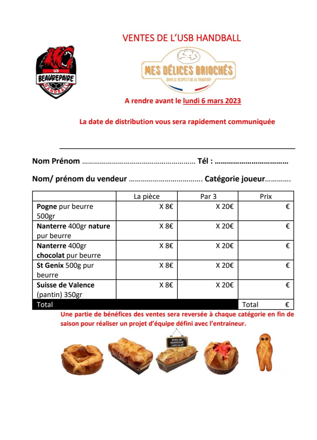 A retourner avant le Lundi 6 Mars - N'oubliez pas de spécifier quelle équipe vous souhaitez soutenir par votre achat !