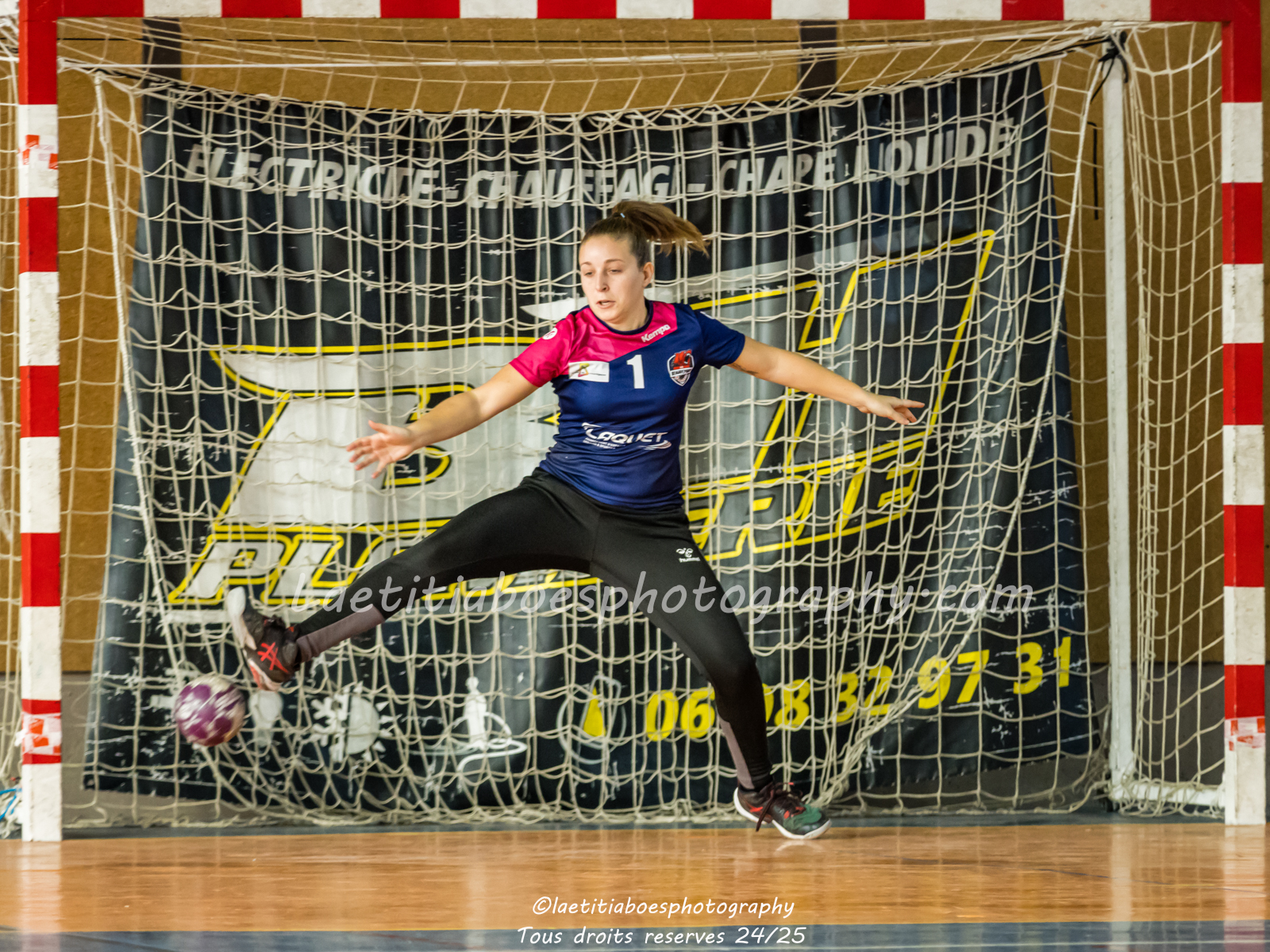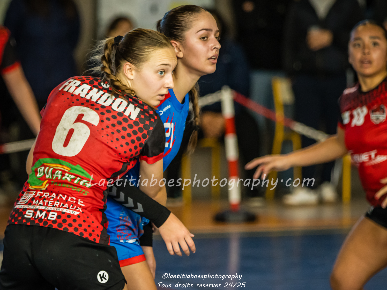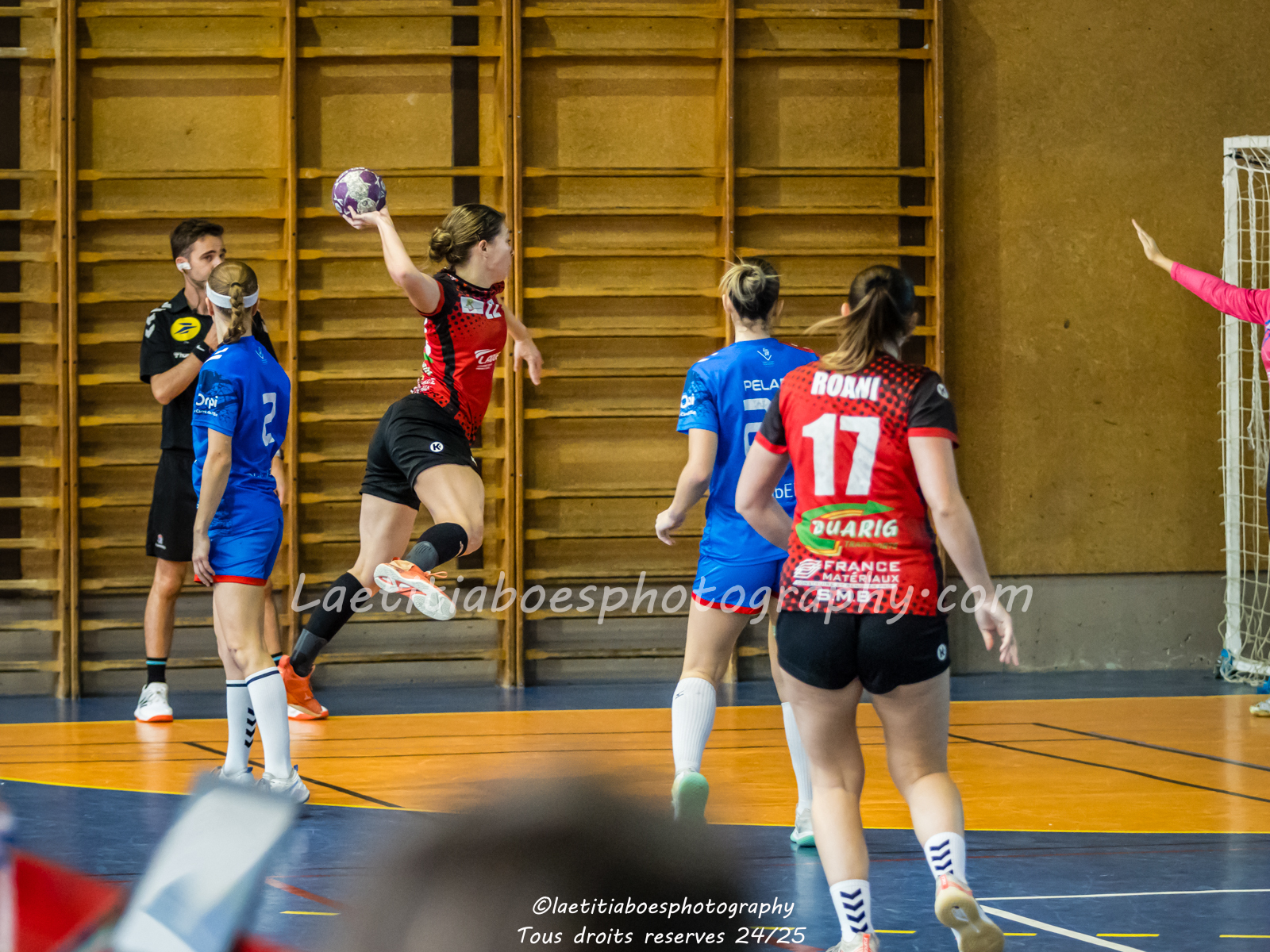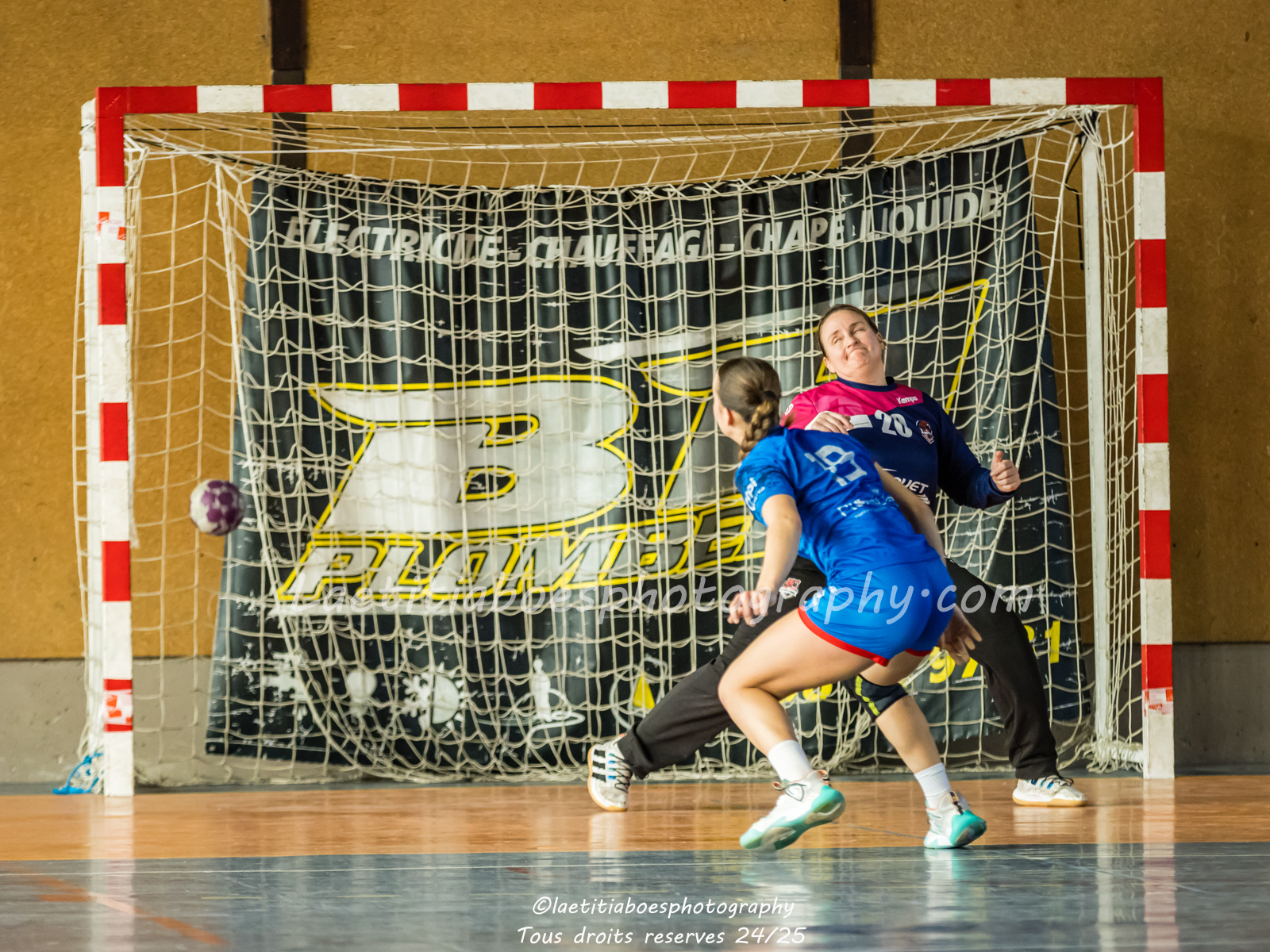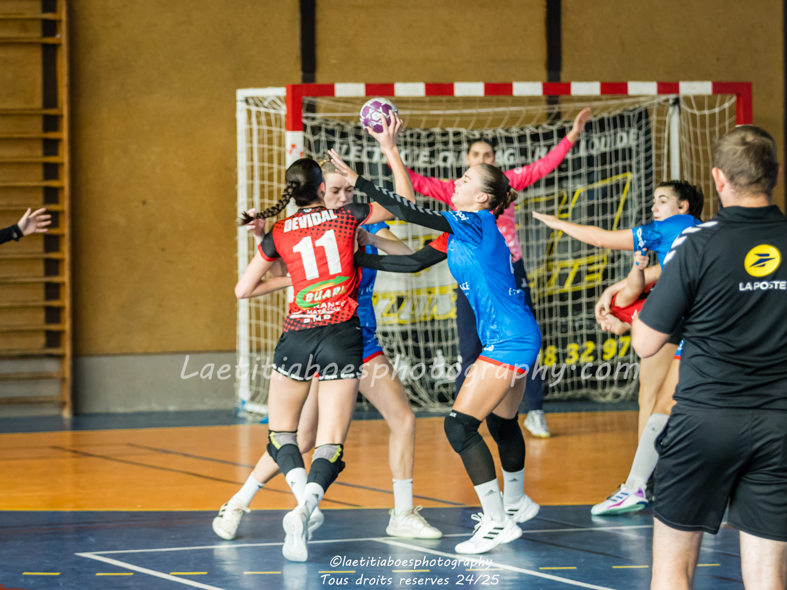 Noam, Orianne, Margot et Salomé protègent la cage d'Ambre contre Vaulx (Photo: L.Boes)