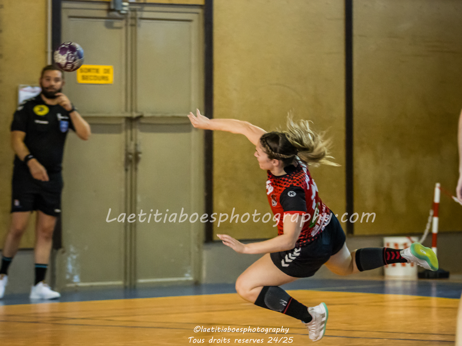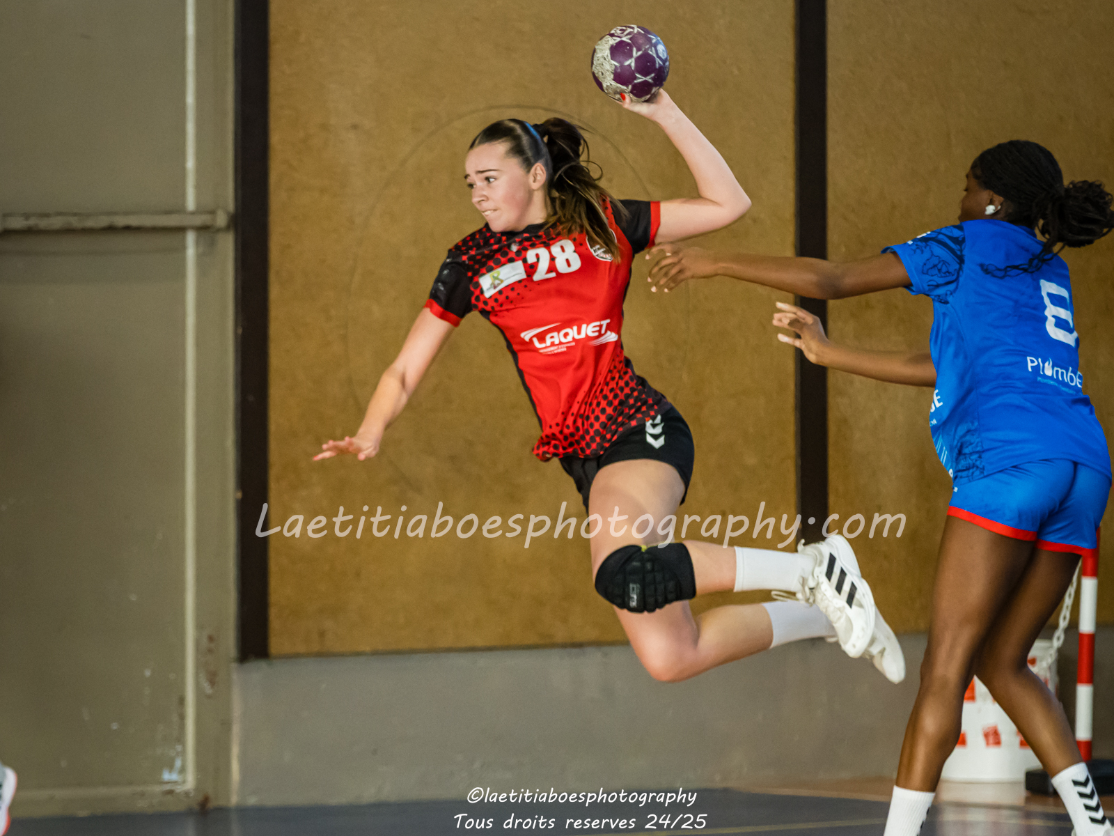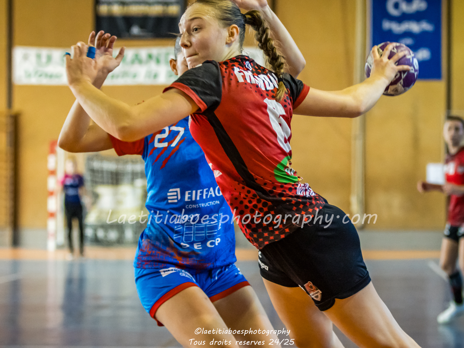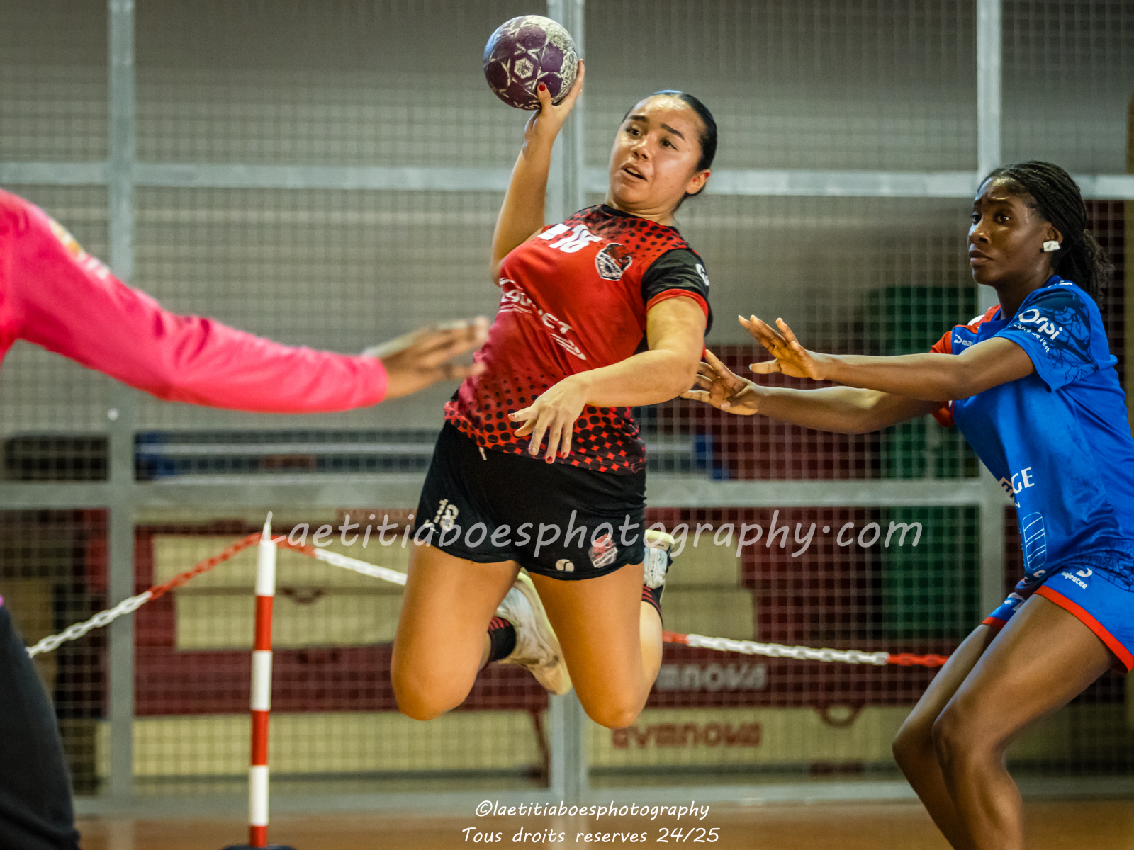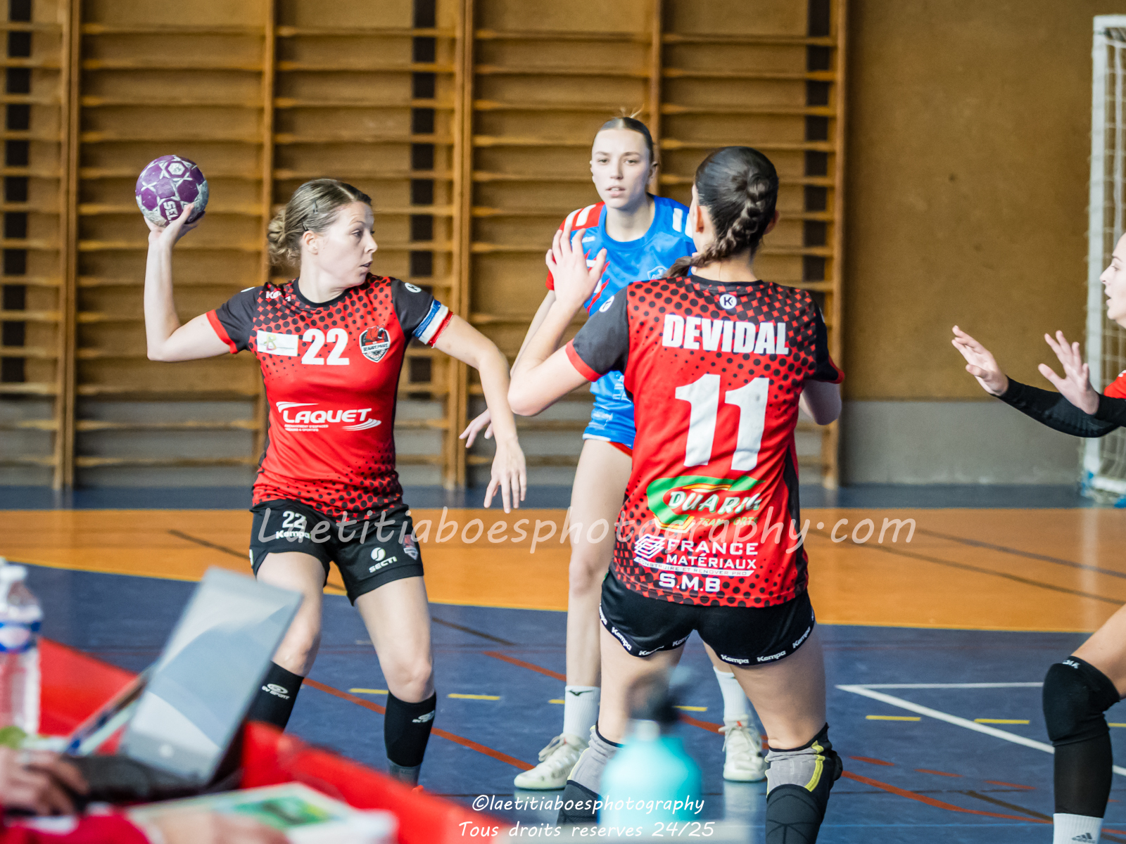 Noam, Orianne, Margot et Salomé protègent la cage d'Ambre contre Vaulx (Photo: L.Boes)